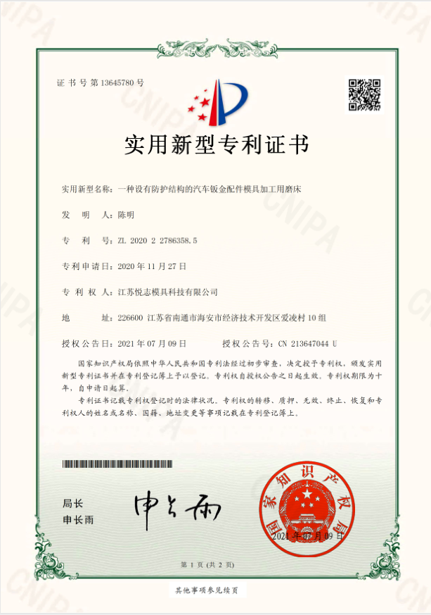 • 设有防护结构的汽车钣金配件模具加工用磨床